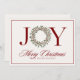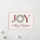 Classic Christmas card design with the word JOY in festive red and a holiday wreath centerpiece. The back of the card comes with ready-made Christmas greetings that you can keep or customise with your own personal message. All colours are fully editable, so you can switch to gold, green, navy, or any shade that matches your holiday style. A timeless and elegant card for sending warm holiday wishes to family, friends, and coworkers.