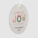 This funny "spread love not germs" christmas/holiday ornament features a word " joy " with a candy cane, greenery wreath with ribbon, and red-nosed reindeer with mask on cream white background. The reverse side features your photo. Personalise it for your needs. You can find matching products at my store.