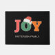 JOY! Santa Hat Script Typography Custom Family Doormat
