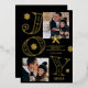 Joy script 2 photos snowflakes black Christmas Foil Holiday Card