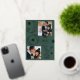 Spread joy and blessings this holiday season with this stylish and festive two-photo "Joy" Christmas card. Featuring elegant letters in real rose gold foil on dark forest green this card offers a personalised touch to your holiday greetings. The modern design incorporates snowflake accents and space for two of your favourite family photos, making it the perfect way to share love and happiness with friends and family