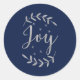 JOY Silver Blue Botanical Leaf Modern Holiday Classic Round Sticker