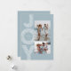 A festive flurry JOY frames two photos on this unique Christmas card. Perfect for sending holiday greetings to family and friends, it features a vertical and a horizontal photo on a soft sky light blue background. The back of the card is a matching light blue speckled with a coordinating white snow pattern. This card is available in other colours and also as a digital Christmas card download.