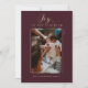 Wish your family and friends a happy new year with our elegant faux gold calligraphy and deep burgundy Happy New Year single family photo card. Design features a photo placeholder to display your special family photo. "Joy to the New Year" is displayed in an elegant faux gold calligraphy script & text paring. Customise with year and family signature. The reverse side features a simple elegant faux gold stripe design.