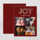 Festive "Joy" to the world typography with faux eucalyptus wreath for the letter "O". Traditional Christmas red background. Add your personal photo to complete this holiday card. Add your own holiday sentiment and names on the reverse side. Red colour is carried over to the back of this card.