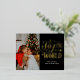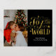 Joy to the World Black Gold Script Photo Modern Foil Holiday Postcard