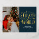Joy to the World Blue Gold Script Photo Modern Foil Holiday Postcard