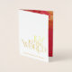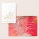 Make an impact with your holiday greetings with this design of minimalist elegance on the front, with simply the words Joy To The World in an elegant script typography and your greeting along the bottom, printed in real gold foil and lots of white space so the message really stands out. Inside your greeting and names are set in white against a stylish background in shades of festive red embellished with gold, and an Angel drawing blended softly into the backdrop. The greetings text is easily personalised and inside you can also change the white text colour if you wish via the Click to Customise Further option. The front and back of the card are printed in real gold foil which is also available in silver.