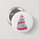 A button with a fun and whimsical illustration. Typography design in the shape of a Christmas tree with some christmas ornaments and a star on top. Inside are the words: Joy to the world.