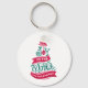 A keychain with a fun and whimsical illustration. Typography design in the shape of a Christmas tree with some christmas ornaments and a star on top. Inside are the words: Joy to the world.