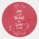 Joy to the World the Lord is Come Christmas merchandise with red background and white font. Inspirational Christian quotes and messages. Some items also include white bokeh sparkle edges.