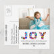 This festive, colourful, confetti JOY to the World postcard is perfect for your Christmas and New Year's greetings. Sparkly, confetti, bokeh is modern and trendy yet simple and clean and will certainly spread joy to friends and family this holiday season. Customise with your family photo, name, and year. On the back, there's room for a short holiday letter. To see other “Joy to the World” items, please check out our collection at http://www.zazzle.com/collections/joy_to_the_world_holiday_card_collection-119029839808970656?rf=238487979764022950 If you need help, please email me at colorfulgalshop@gmail.com. Photography © Storytree Studios, Stanford, CA Thanks for stopping by!!