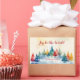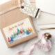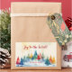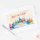 "Joy to the World" is in red script on this Christmas sticker. The design features a colourful pine tree snowy hillside during the winter holiday season. It is vintage-inspired a watercolor piece. All the text can be edited. Be sure to change the name(s) and date to those you prefer.