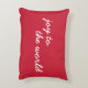 This stylish holiday throw pillow has the Christmas saying Joy To The World in simple red and white script typography.