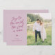 Mulberry pink coloured, 1-photo religious Christmas card featuring "joy to the world, the Lord is come" in a modern handwritten typeface. The back of the card has room to enter your own message.