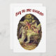Share the joy of Christ’s birth with this beautifully designed religious Christmas card featuring a classic Nativity scene framed in an elegant oval shape. The front displays the message “Joy to the World” in festive red script, with angels watching over the Baby Jesus.