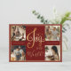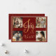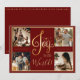 Joy to the workd 4 photo collage holiday card. Holiday deep red background. Add your favourite family pictures to personalise. Add your personal message on reverse side of the card. Change the year on the back of the card. Elegant. So simple, yet chic.