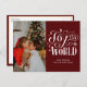Joy to the World Red Calligraphy Photo Modern Holiday Postcard. Send Holiday Greetings to your loved ones with this festive and Modern Holiday Card. All the texts are pre-arranged for you to personalise easily and quickly with your own details. Happy Holidays!