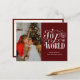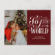 Joy to the World Red Calligraphy Photo Modern Holiday Postcard