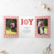 Joy to the world red snowflake Christmas Tri-Fold Holiday Card. The cover features the text: "Joy to the world" and a snowflake in red. Also there are photos on the flap and the left and right inside with a snowflake pattern border. Photography © Storytree Studios, Stanford, CA