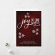 This pretty design makes a great addition to your festive Holiday Season. It features a white graphic depicting "joy to the world" set up with two complementary fonts. Surrounding the words are three trios of white snowflakes. The word "joy" is rendered in a pretty script font with a long flourish on the end of the last letter, making room for the all-caps, bold, casual "to the world" setup. Behind these overlays is a red and black photo depicting bokeh light flares above a sparkling glittery base, which to the celebratory feel. Use the template fields to add your personal messages on the front and inside. Matching pieces are available in the collection.