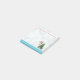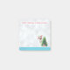 Small square post it notes with a funny illustration. A cute llama wearing black sunglasses and a red santa hat. Standing behind a Christmas tree with festive presents. The word Joy written above his head in a colourful holiday font. Silver bokeh background. Whimsical and fun Christmas themed design.