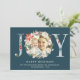 JOY Typography Poinsettia Floral Wreath Photo Holiday Card