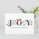 JOY Watercolor Holiday Foliage and Flowers Flat Card | Send holiday greetings with this customisable floral holiday card. It features modern typography and watercolor illustrations winter foliage and flowers like poinsettias and hollies. Matching items are available.