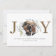 This is a joy Christmas double sided flat card featuring modern typography and watercolor greenery around a circular photo. Features 5 photos in total. Photos by prostooleh / Freepik.