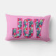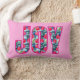 JOY Word Art in Fuchsia Pink and Teal Green Lumbar Cushion