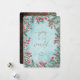 "Joy to the world" non photo holiday design featuring red berries and fir branches wreath, on textured blue background, with religious inspired message. The back is adorned with photo of rustic wooden background. Easily customise with your surname and year.