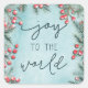 Joy World Religious Christmas Rustic Holiday Blue Square Sticker