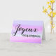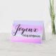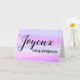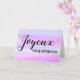 This beautiful and elegant card is the perfect way to wish anyone a happy birthday! The front of the card has the French phrase "Joyeux anniversaire" in black brush (brushstroke) script lettering. A pretty pastel watercolor wash in light blue, purple, and pink covers both the front and back of the card. The inside of the card is blank, awaiting your personal message. Great for French speakers, teachers, or students...or anyone!