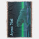 A peaceful moment in the long Arctic night. A Polar Bear rests at the edge of an open area in the pack ice. The Northern Lights glow in the distance; bright stars twinkle overhead. “Joyeux Noёl” appears in glowing blue and white. Polar bears are endangered. How much longer will scenes like this be able to occur? Please help save Polar Bears from extinction.