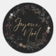 Simply Chic "Joyeux Noel" French Merry Christmas Wreath on black background Classic Round Stickers! Perfect holiday envelope seals ...
