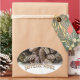 Rustic pine cones set off this classic, elegant design along with custom typography wishing a Joyeux Noel.