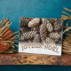 Rustic pine cones set off this classic, elegant design along with custom typography wishing a Joyeux Noel.