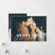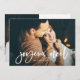 This simple and trendy holiday card says "Joyeux Noël," or Merry Christmas in French, in a casual modern white script overlay. Add two of your favourite family photos, and a personal message on the back.