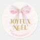 Joyeux Noël Pink & Green French Coquette Bow Classic Round Sticker