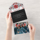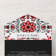 Winter Flowers Joyeux Noël Elegant Scandinavian Pattern Christmas tri-fold Card with envelope all in one design - Holiday Photo card from Ricaso - designed with Joyeux Noel text (or change to suit your requirements - this elegant classy yet modern, red, black and white Nordic floral design is sure to be a hit with family and friends .. easy to add your own text and photo - Send your greetings in style this holiday with a personalised card