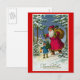 Beautiful vintage French Christmas card showing Santa Claus walking through a snowy landscape with a little girl. The card message is " Joyeux Noel".
