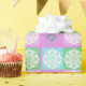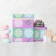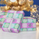 Pink, mint and lilac, christmas paper with a white snowflake overlay.