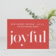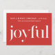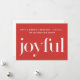 Modern Christmas card features bold joyful type on a vibrant red background with simple white typography religious holiday message.