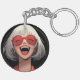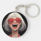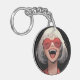 Joyful Anime Girl: Grey Hair, Red Glasses, Red Rob Key Ring