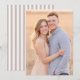 This wedding invitation features a warm, intimate design with two individuals standing closely together in an outdoor setting. The layout is centred, highlighting the connection between them against a softly blurred natural landscape. The colour palette includes earthy tones like beige and muted greens, complemented by a pale peach dress and a light blue shirt, creating a harmonious and gentle visual effect. The photographic style captures realistic details during the golden hour, enhancing the romantic atmosphere. Perfect for conveying happiness and affection, this design emphasises genuine emotion and closeness, making it ideal for celebrating love and companionship.