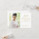 Announce your big news in style with these chic pregnancy announcements featuring your favourite vertical photo with a golden hand lettered text overlay reading "Joyful!" Personalise with your name and expected arrival date.