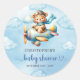 Celebrate your little aviator’s upcoming arrival with this adorable boy baby shower sticker featuring a cute teddy bear pilot flying a vintage airplane. Designed in a charming blue and brown color palette, this aviation-themed sticker adds the perfect touch of sweetness and adventure to any baby shower décor. Use it for favor bags, envelopes, gift packaging, party décor, thank-you tags, or diaper raffle prizes to instantly elevate your event’s theme.