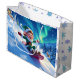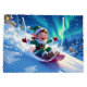 A sweet Christmas gift card with a happy elf sliding down a snowy winter hill with glee! The sides have cute red and blue snowflakes.