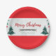 Add a festive touch to your holiday celebrations with this beautifully designed Christmas paper plate. Featuring a bold red border, elegant “Merry Christmas” lettering, and charming illustrations of Christmas trees and seasonal greenery, this plate brings warmth and holiday cheer to any table setting.