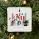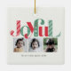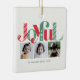 Joyful Christmas Three Photo Red Green Ceramic Ornament
